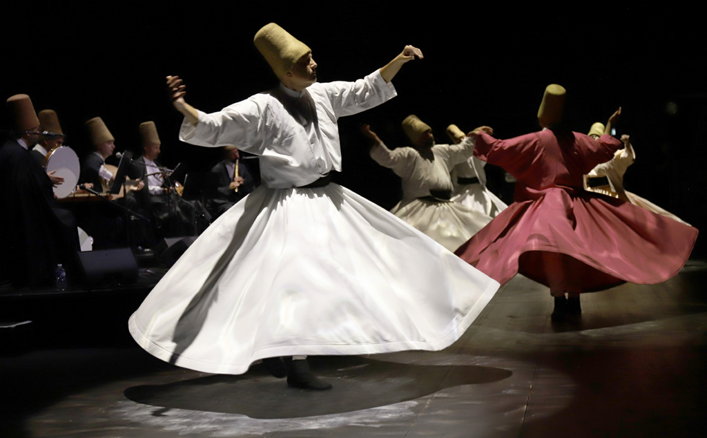 La danse, « sema », est étroitement rattachée à la musique. C’est une danse mystique du 13e siècle créée par le penseur Mevlana Celalettin Rumi qui a introduit la musique dans son Tekke qui, avec la danse, permet le voyage spirituel de l'homme vers le créateur. Selon Rumi, tout tourne dans l'univers, depuis les planètes et les étoiles de l'espace extra-atmosphérique jusqu’à l'atome, élément constitutif de la matière. La rotation est une action qui constitue l'essence même de l'existence.